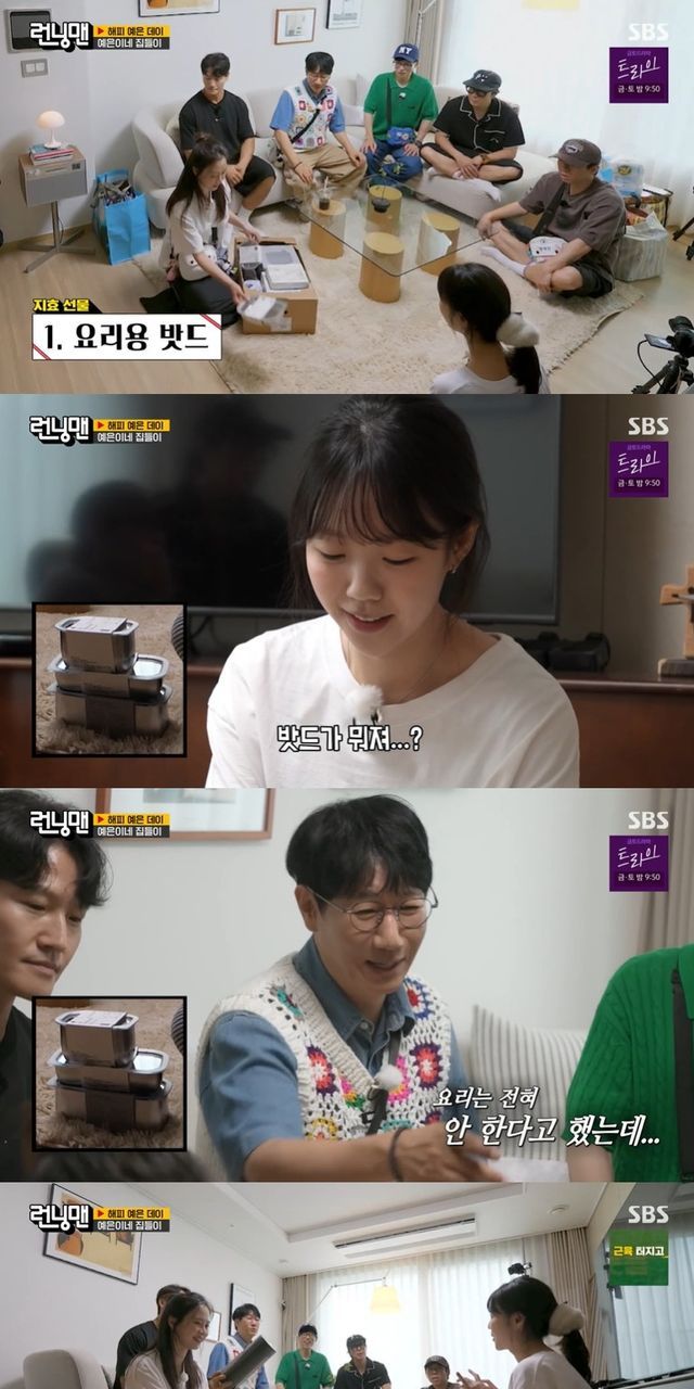 가장 먼저 선물을 공개한 송지효는 "주방용품이 얼마나 있는지 몰라서"라며 밧드를 꺼내 보였고, 평소 요리를 잘 하지 않는다는 지예은은 "밧드가 뭐죠?"라고 물어 웃음을 자아냈다.