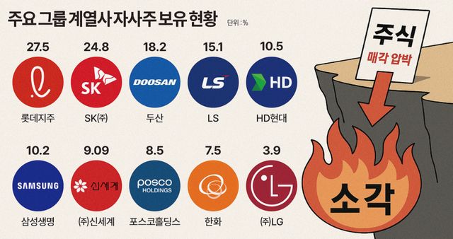 그룹들이 이재명 정부의 자사주 소각 의무화 법안에 난색을 표하고 있다. 특히 자사주 보유 비중이 높은 그룹들은 경영권 방어와도 연계되는 상법 개정 논의에 촉각을 곤두세우고 있다.