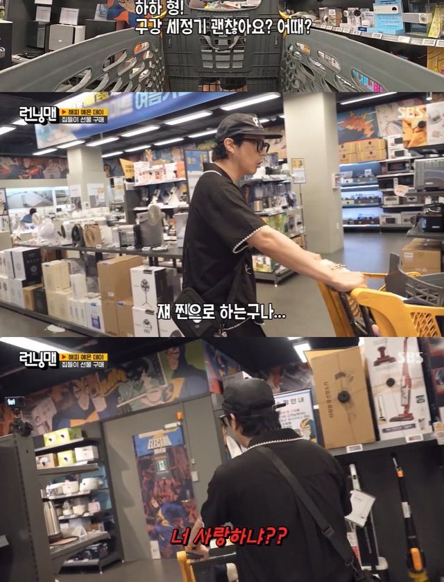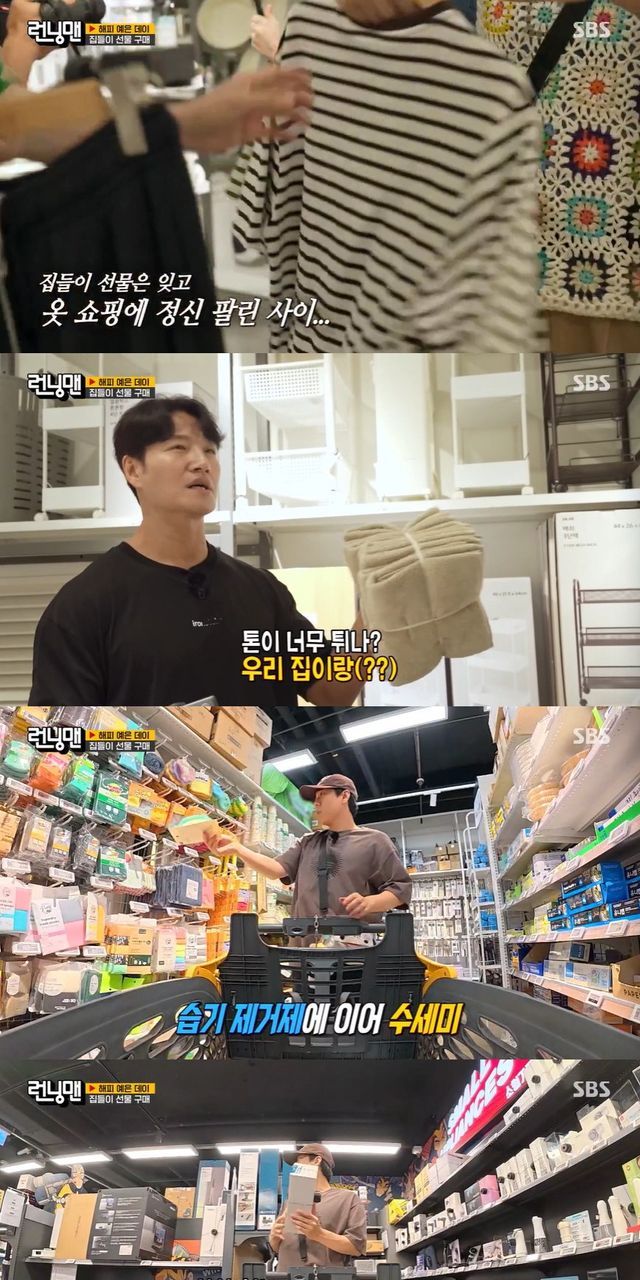 최근 이사한 김종국도 수건을 들곤 "톤이 너무 튀나? 우리 집이랑?"이라며 살림살이 확보에 나섰고, 어느새 지석진은 옷 4벌을 들고 있는 모습이 포착돼 웃음을 더했다.