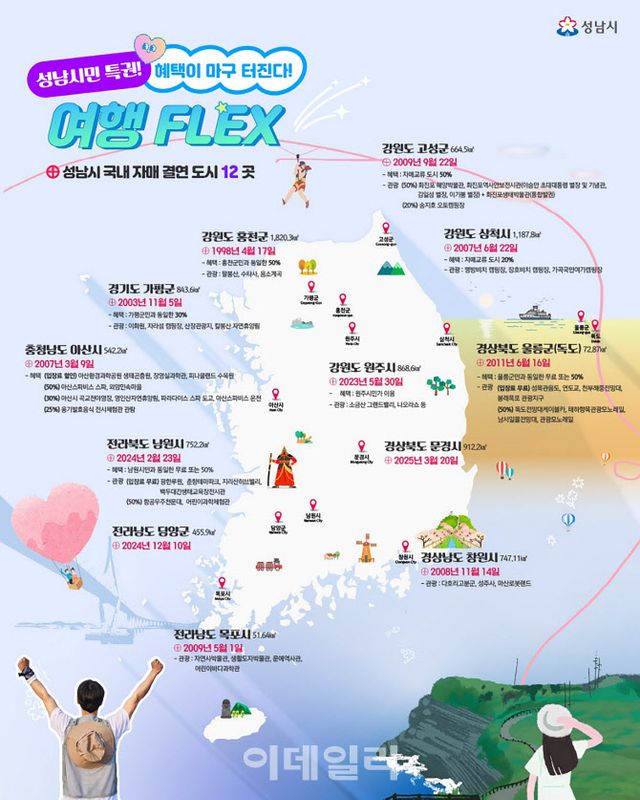 [성남=이데일리 황영민 기자] 아산에서 즐기는 온천욕, 춘향전의 고장 남원의 정취, 울릉도에서 바라보는 독도. 이 모든게 성남시민에게는 반값에 제공된다.