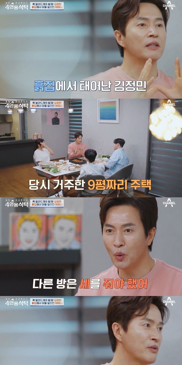 대표곡 '슬픈 언약식'으로 인기를 얻던 시기에도 김정민은 9평 남짓한 단칸방에 살고 있었다고. 김정민은 "방 2개가 있었는데 다 못 살고 다른 방은 세를 줘야 했다"며 "'슬픈 언약식' 끝나기 전까지도 우리 어머니는 새벽에 계속 나가서 건물 청소를 하셨다"고 회상했다.