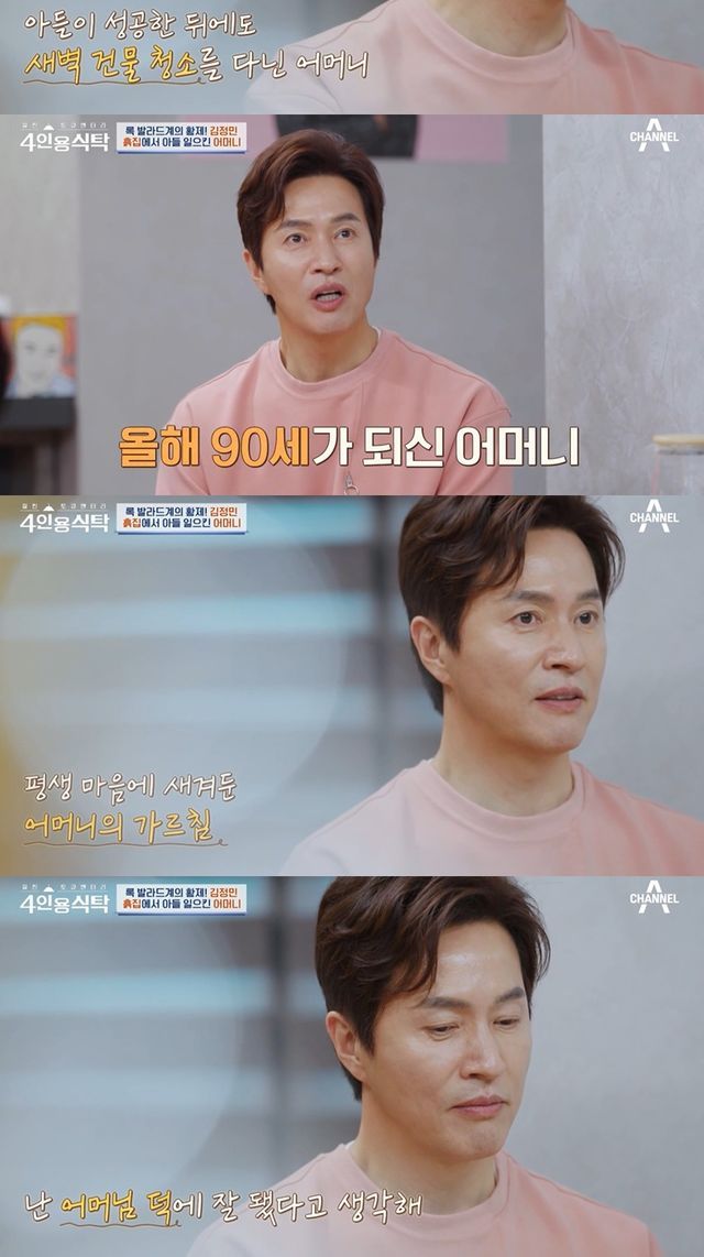 김정민은 어머니로부터 많은 가르침을 받았다고도 말했다. 그는 "아끼고 절약하는 습관들이 있다. 남의 것 탐내지 말고, 남의 것 빌려쓰지 말라는 얘기를 들었다. 난 어머니 때문에 잘 됐다고 본다"고 감사한 마음을 전했다.