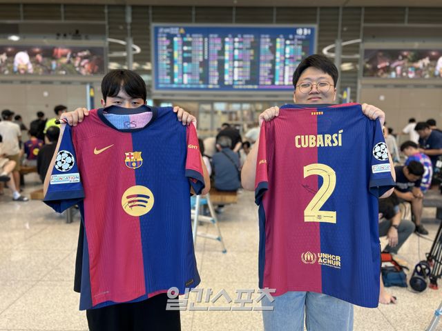 바르셀로나 입국 전날인 28일 서울에 숙소를 잡았다는 김민혁 씨와 김병옥 씨는 리오넬 메시(인터 마이애미)가 뛰는 것을 보고 10년 전쯤 팬이 됐다고 한다. 올해 초 스페인에 가서 바르셀로나 경기를 직접 보기도 했다. 둘은 바르셀로나 선수들을 눈앞에서 보고 프렌키 더 용의 사인까지 받아내며 ‘성덕(성공한 덕후)’이 됐다.