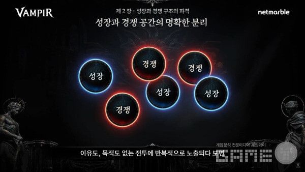 29일 온라인으로 진행된 '뱀피르' 미디어 쇼케이스에서 넷마블네오 한기현 PD는 “MMORPG가 직면한 문제들을 외면하지 않고 정면으로 돌파하고자 한다”며 “‘원래 그런 거야’라는 관성을 넘어서기 위한 세 가지 파격을 준비했다”고 밝혔다. 쇼케이스에서는 ‘표현’, ‘성장·경쟁’, ‘운영’이라는 세 축을 중심으로 게임의 핵심 방향성이 공개됐다.