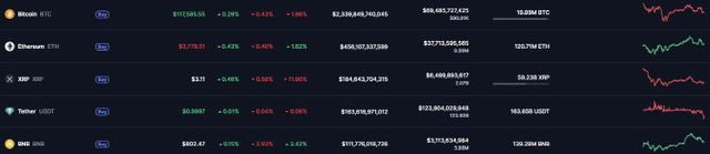 30일 글로벌 가상자산 시황중계 사이트 코인마켓캡에 따르면 이날 오전 7시 27분 기준 비트코인 가격은 24시간 전 대비 0.43% 내린 11만 7585달러를 기록했다. 일주일 전과 비교하면 1.14% 하락했다. 알트코인(비트코인 외 가상자산)의 대표격인 이더리움은 전일 대비 0.4% 하락한 3778달러에 거래됐다.