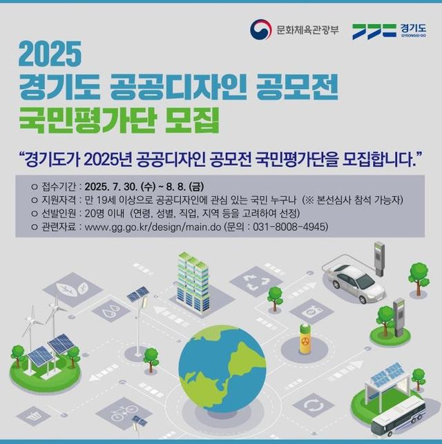 [파이낸셜경제=김영란 기자] 경기도는 8월 8일까지 ‘경기도 공공디자인 공모전’ 본선 심사에 참여할 국민평가단 20명을 공개 모집한다.
