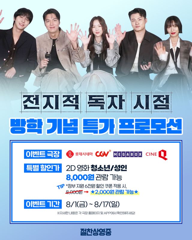 ‘전지적 독자 시점’ 방학 맞이 특가 프로모션에 대한 자세한 내용은 각 영화관 사이트 및 애플리케이션에서 확인할 수 있다.