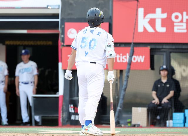 강백호는 지난 30일 서울 잠실구장에서 열린 LG 트윈스전에 5번 지명타자로 선발 출전해 3타수 무안타에 그쳤다. 0-0이던 2회 초 무사 1루에서 4-6-3 병살타가 가장 아쉬웠다. 나머지 타석은 각각 3구 낫아웃 삼진, 중견수 뜬공으로 물러났다.