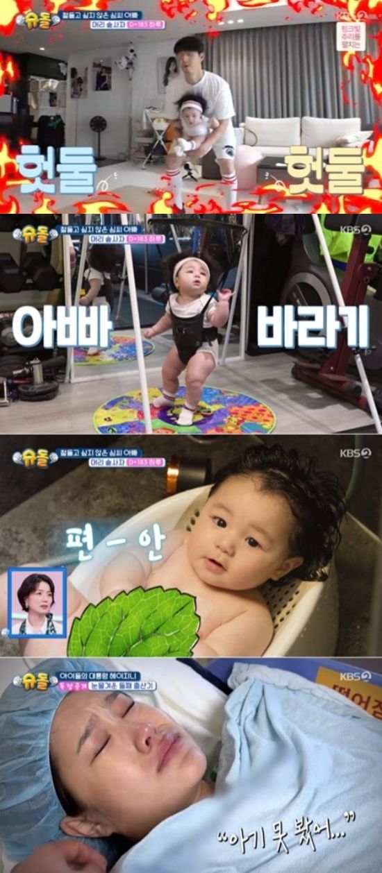 (엑스포츠뉴스 김수아 기자) 심형탁 아들인 생후 183일인 하루가 남다른 허벅지 파워를 자랑했다.