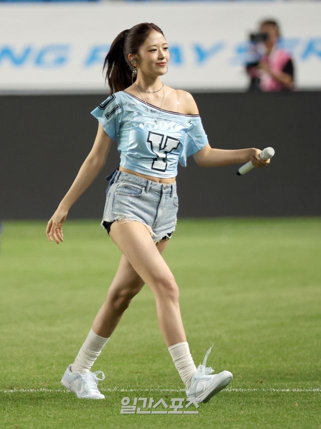 이날 아이브는 유니폼을 무대의상 풍으로 리폼한 상의와 숏팬츠를 매치한 시축 패션을 선보였다. 광택이 돋보이는 하늘색 숄더 탑에 자연스럽게 찢어진 데님소재 반바지를 매치해 청량함을 한껏 강조했다. 멤버별로 각자 다른 매력을 자랑하는 악세사리 디테일과 유니폼 이니셜도 눈길을 끌었다.