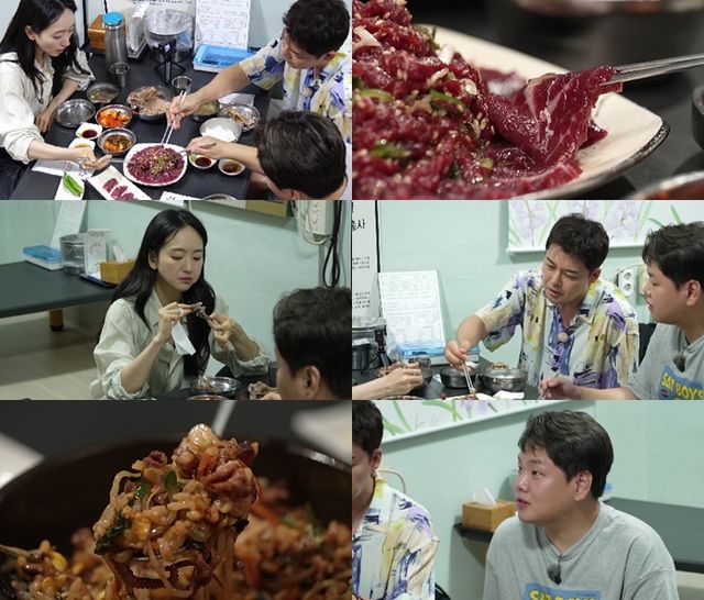 전현무와 원진아가 의외의 케미를 내뿜은 상황 속, 식당에 자리잡고 앉은 세 사람은 간장 육회, 우낙 돌비, 한우 찐 생비 등 이름도 생소한 신박한 메뉴 한 상을 받는다.