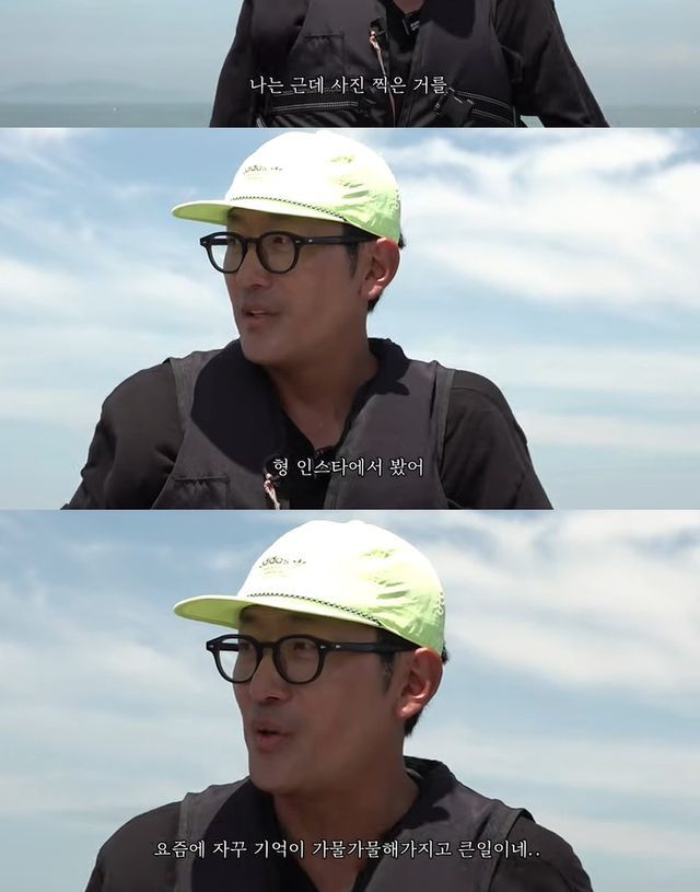 하정우는 "사진 찍은 거를 형 인스타에서 봤다. 요즘에 자꾸 기억이 가물가물해서 큰일이다"라며 알코올로 인한 고충을 털어놨다.