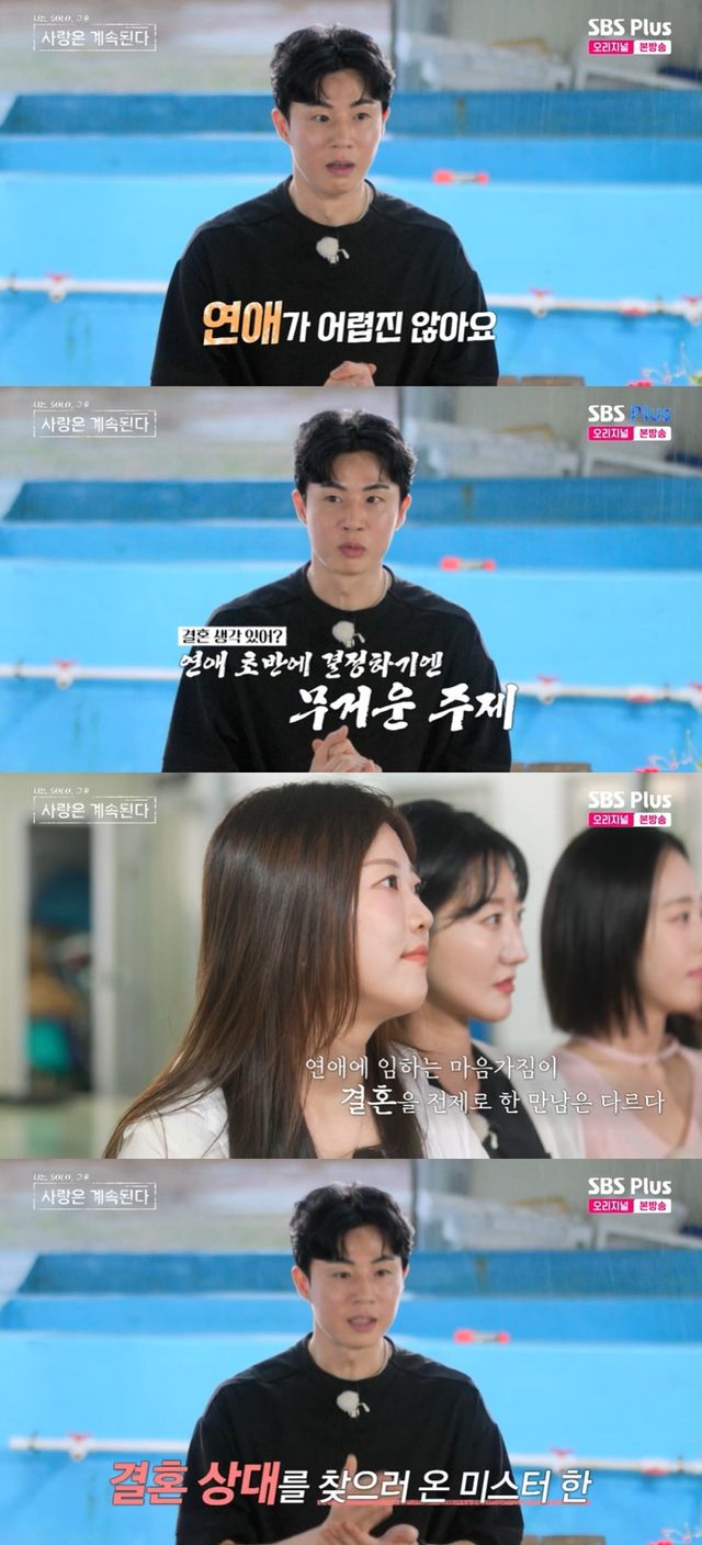 그는 "사실 전 연애가 어렵진 않다. 시작은 누구나 다 잘할 수 있겠지만 시작점에 상대방에게 결혼 생각이 있냐고 물어보고 시작하는 건 부담일 수도 있고, 보통 여성분들은 좋은 사람이면 잘 만나다가 결혼할 수 있을 거라는 생각이 들지 않냐"며 말문을 열었다.