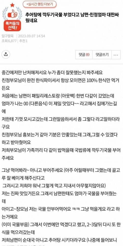 추어탕에 깍두기 국물 부었다는 이유로,,