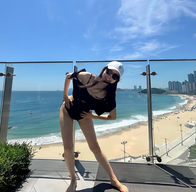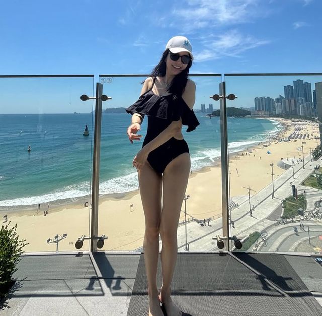 전날 핫핑크 모노키니 자태를 뽐냈던 장영란은 더 과감한 디자인의 수영복을 선보였다. 그는 허리라인이 뻥 뚫린 블랙 모노키니를 선택, 군살 없이 매끈한 허리라인을 드러냈다. 169cm 늘씬한 키와 멋진 비율을 자랑하며 수영복을 멋스럽게 소화했다.