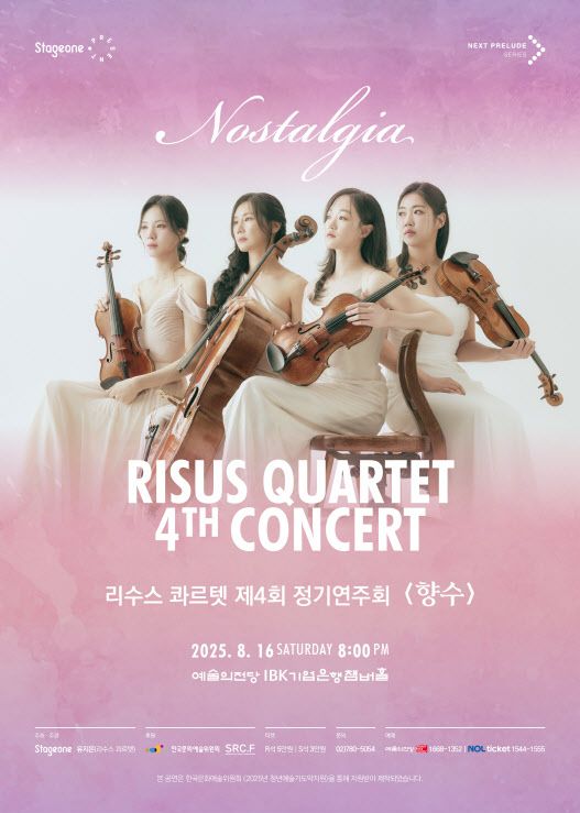 한편, ‘웃음(Risus)’을 뜻하는 라틴어 이름을 가진 리수스 콰르텟은 바이올린 이해니·유지은, 비올라 장은경, 첼로 마유경으로 구성된 현악사중주단이다. 2020년 창단 이후 2021 피쉬오프 챔버 콩쿠르, 2023 멜버른 국제 실내악 콩쿠르, 2024 아트실비아 실내악 오디션 등 국내외 주요 콩쿠르에서 입상하며 음악성을 인정받았다.