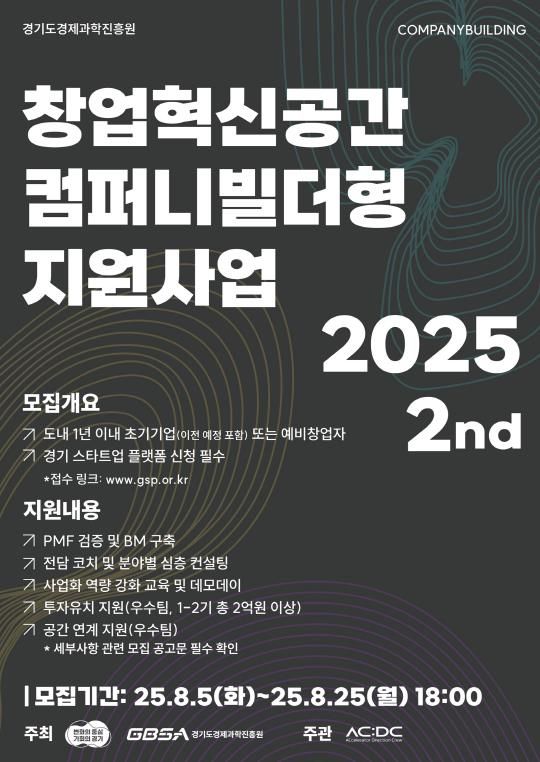 [파이낸셜경제=김영란 기자] 경기도와 경기도경제과학진흥원은 ‘2025 경기창업혁신공간 컴퍼니빌더형 지원사업’ 2기 참가기업을 모집한다.