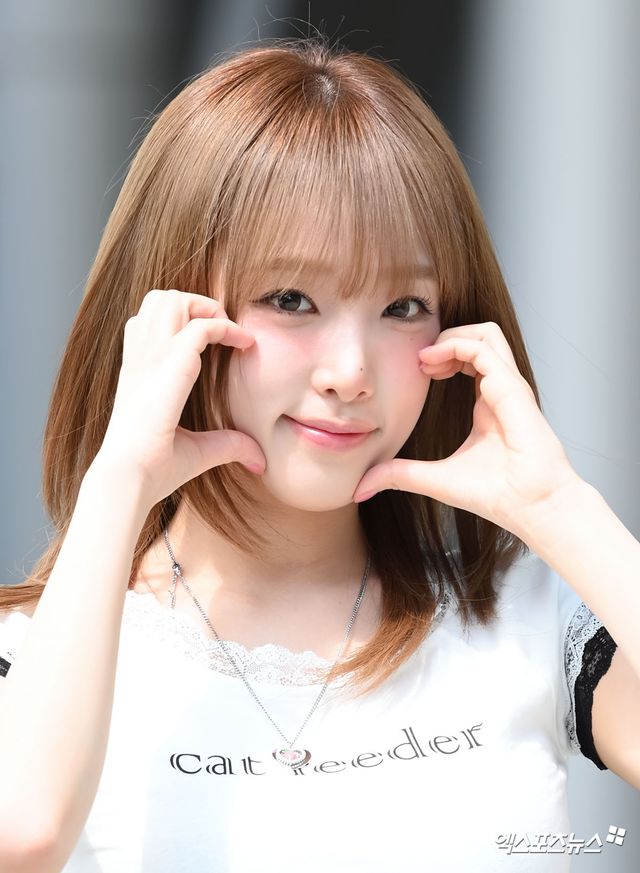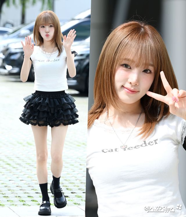 이날 생방송에 참석한 가수 최예나가 출근길에 포즈를 취하고 있다.
