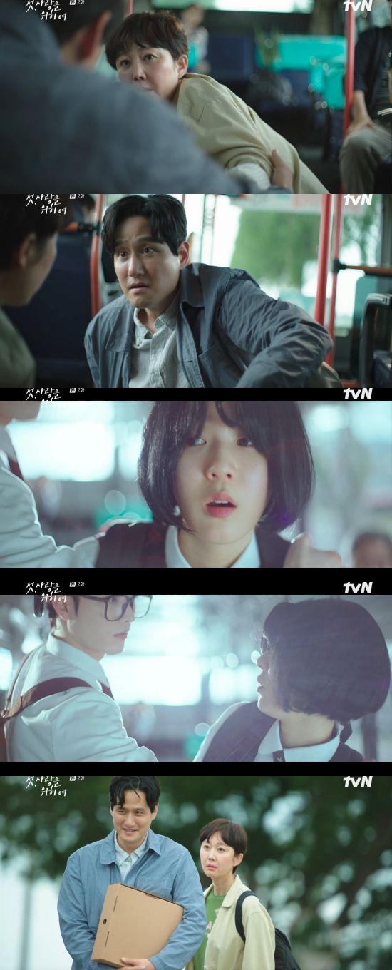 5일 방송된 tvN 새 월화드라마 '첫, 사랑을 위하여' 2회에서는 이지안(염정아 분)이 이효리(최윤지)를 만나러 가는 길에 우연히 류정석(박해준)과 재회한 모습이 그려졌다.