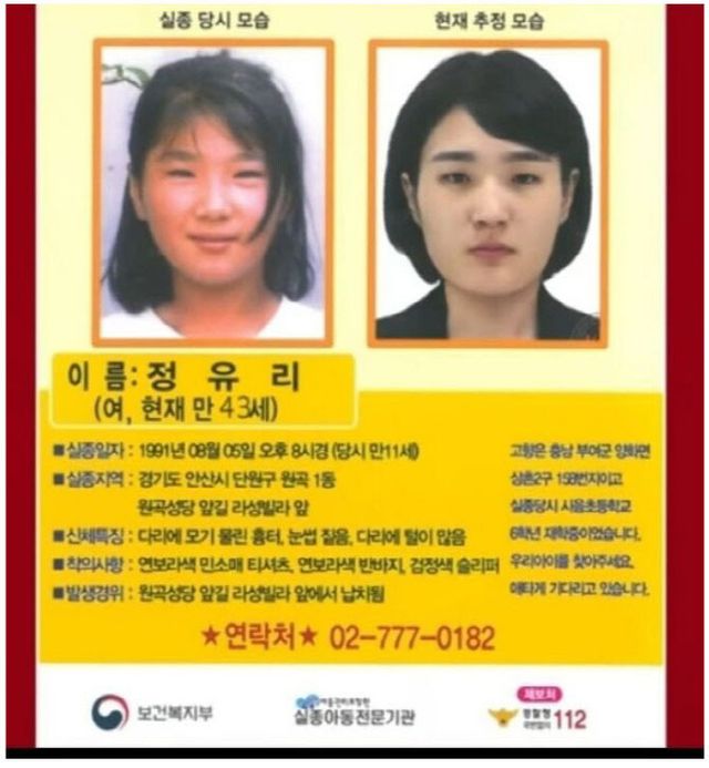 한편 정양은 실종 당시 시음초등학교 6학년에 재학 중이었고, 짙은 눈썹에 다리털이 많았다. 정양은 올해 기준 만 47세가 됐다.