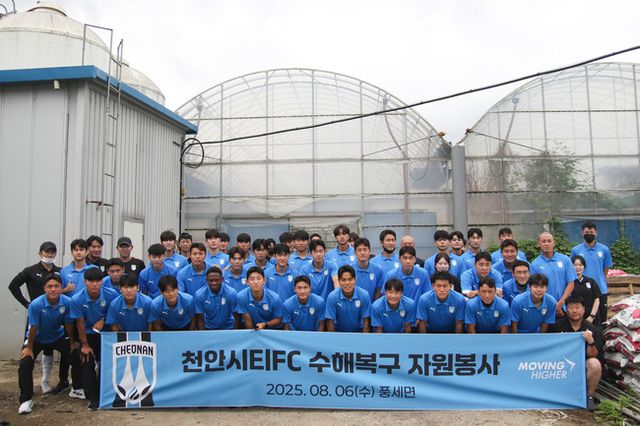 이번 활동은 이미 1차 복구가 이뤄진 농가 중에서도 여전히 도움이 필요한 곳을 찾아 실질적인 힘을 보태고자 기획됐다. 이날 봉사에는 선수단 전원이 참여했으며, 훈련 일정 전 오전 9시부터 현장을 찾아 구슬땀을 흘리며 복구 작업에 힘을 보탰다. 사무국 직원들도 함께 현장에 투입돼 농가 일손을 보탰고, 천안 연고 프로구단으로서 피해 주민들에게 희망을 전하기 위한 뜻깊은 자리였다.