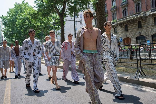 컬렉션의 피날레 직후 쇼장 앞 거리로 쏟아져 나온 파자마 군단.
