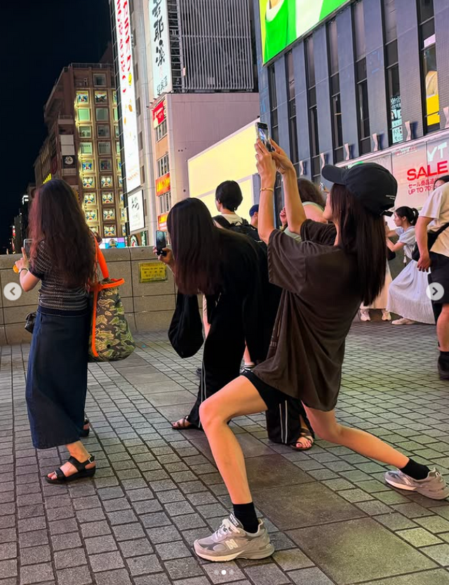 하지는 반쯤 쪼그려 앉은 채 스마트폰을 들어 올리고, 초집중 상태로 누군가를 찍고 있다. 그 모습은 거의 ‘사진계의 마샬아츠’. 옆에 있던 사람들도 빵 터졌는지, 즐겁게 웃고 있다.