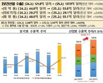보건산업은 반도체(733억 달러, +11.4%) 다음으로 높은 수출 증가율을 보이며 국가 수출 회복의 핵심 동력으로 부상했다.
