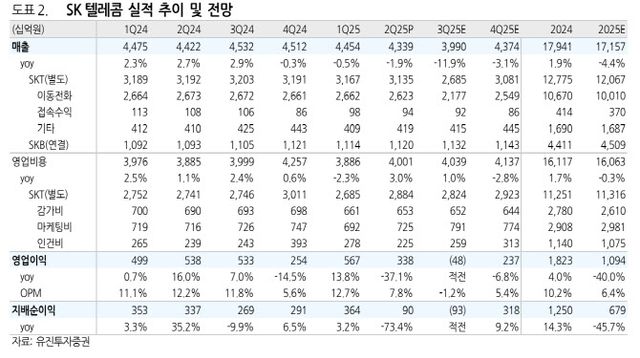 가입자 이탈로 인한 매출 감소와 유심 관련 비용 약 2100억원, 유통망 손실보상 약 400억원 반영되며 저조한 실적을 기록했다.