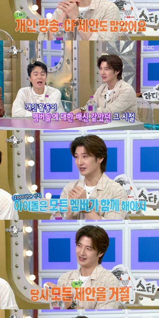 그러면서 "그런데 당시에는 그룹의 멤버가 개인활동을 하면 팀을 배신하는 것처럼 느껴지는 분위기였다. 아이돌은 모두가 함께하는게 당연하다고 생각했고, 팬분들도 그렇게 생각을 했다. 그래서 당시 모든 제안을 거절을 했다. 멤버 모두가 같이 하는 것만 했었다"고 아쉬운 마음을 드러내기도 했다.