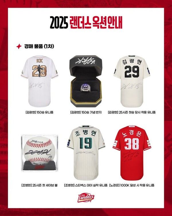 특히, 팀의 레전드 김광현의 KBO 통산 150승 달성 유니폼과 베테랑 불펜 노경은의 KBO 통산 1000탈삼진 기념 유니폼 등 의미가 담긴 한정판 물품도 경매에 오른다.