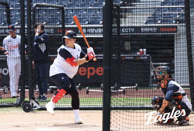 손아섭은 7일 대전 한화생명 볼파크에서 열리는 2025 신한 SOL Bank KBO리그 KT 위즈와의 홈경기를 앞두고 라이브 배팅을 소화했다. 김경문 감독은 물론 전 코칭스태프와 코디 폰세 등 선수들까지 손아섭의 훈련 장면을 지켜봤다.