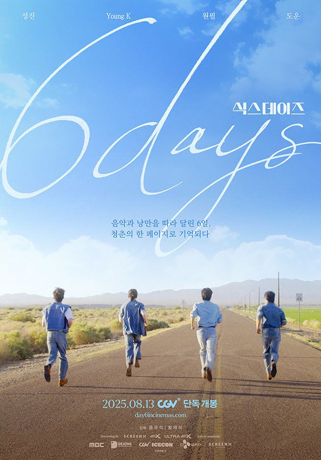 ‘6DAYS’는 음악과 낭만을 따라 달린 6일, DAY6의 시네마틱 여정을 담은 뮤직 로드무비. 개봉을 5일 앞둔 가운데 영화관입장권 통합전산망 전체 예매율 5위, CGV 전체 예매율 4위에 오르며 기대를 더한다.