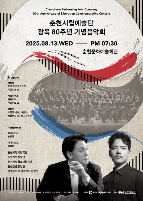 이번 연주회에서는 거장 베토벤의 합창 환상곡 작품번호 80번과 교향곡 제9번 작품번호 125 중 제4악장 ‘환희의 송가’, 그리고 시벨리우스의 핀란디아를 연주한다. 협연으로 피아니스트 김홍기, 춘천시립합창단, 춘천시립청소년합창단, 춘천청춘합창단, 강원대학교 합창단이 함께한다.