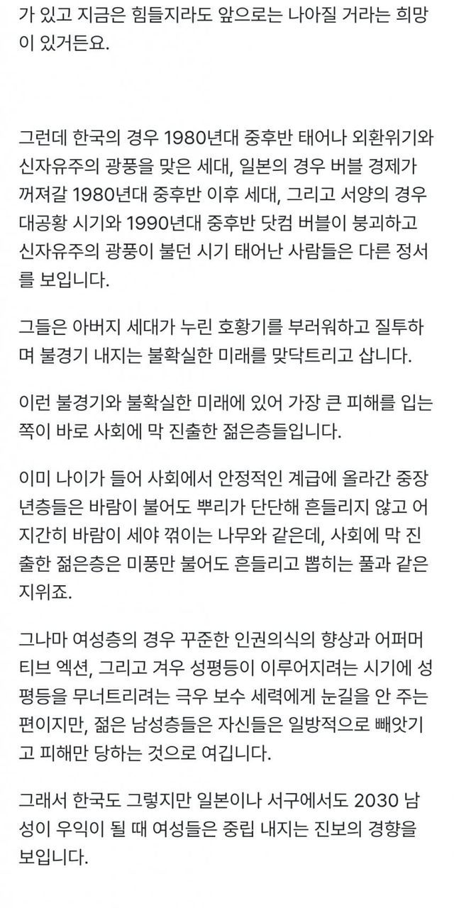 20대 남성들의 피해의식이 극우화를 이끄는 건 맞긴 합니다