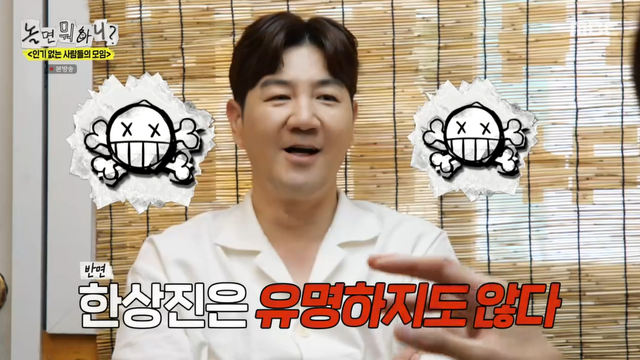 한상진은 "너무 기분이 나빴던 게 있다. 나한테 유명하지 않다고 했는데 다음에 나온 사람들이 내가 인정할 수 없는 사람들이더라. 그 사람들 유명하지도 않다"라고 버럭했다.