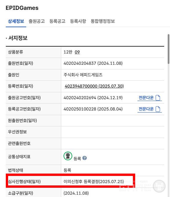 한국 특허청은 지난 7월 30일 에픽게임즈의 이의신청을 기각하고 'EPIDGames' 상표를 정식 등록했다. 현재 국내에서는 에피드게임즈가 승리한 상황이다. 다만 해외 상표권 분쟁도 기각됐다는 말은 있지만 아직 특허청 검색에서 확인되지 않고 있다.