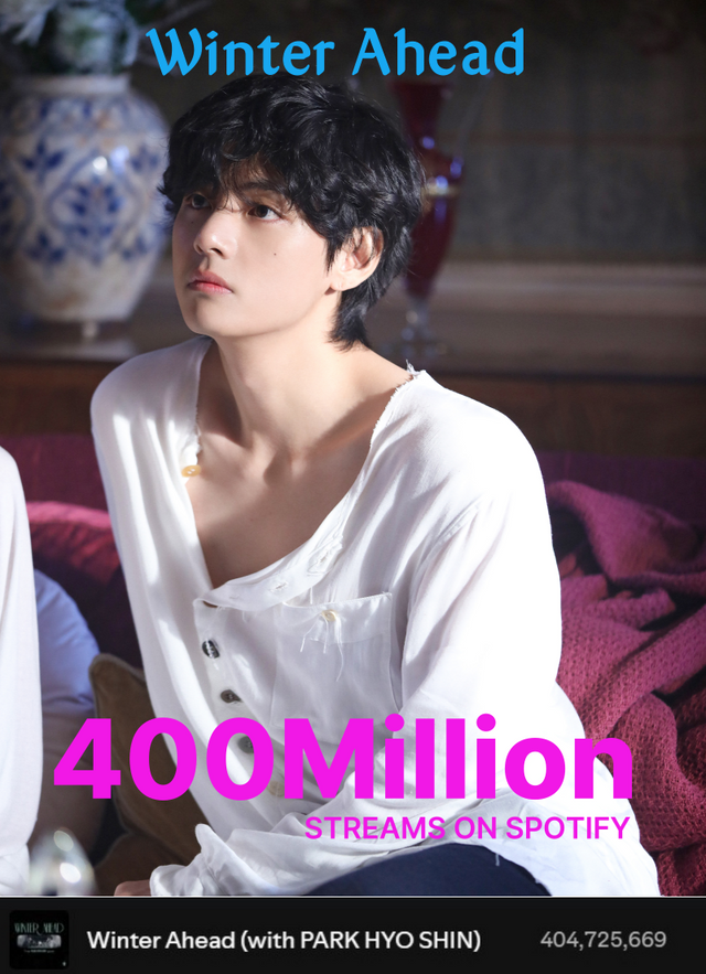 이로써 뷔의 스포티파이 4억 스트리밍 곡 목록에는 ‘러브 미 어게인’, ‘Christmas Tree’, ‘Sweet Night’, ‘FRI(END)S’, ‘슬로우 댄싱’, 그리고 이번 ‘윈터 어헤드’까지 총 6곡이 자리잡았다. 여름이든 겨울이든, 뷔의 목소리는 언제든 계절을 바꿔버릴 준비가 돼 있다.