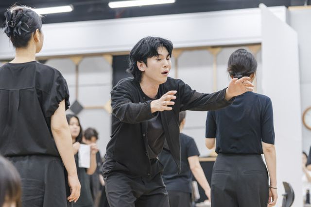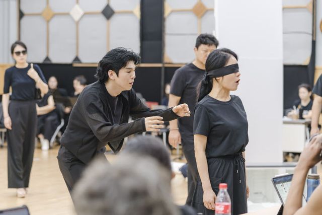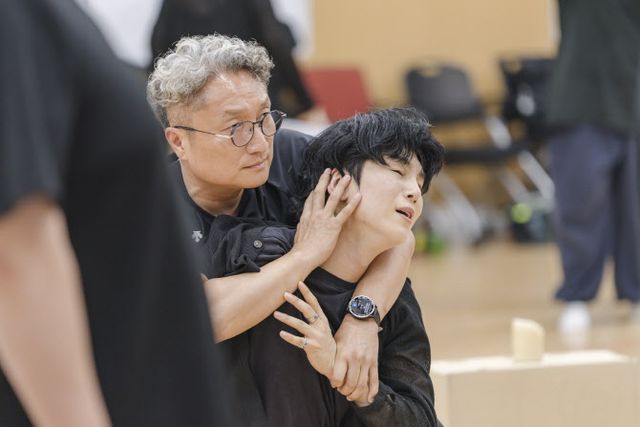 극립극장 전속단체 국립창극단 신작 ‘심청’의 연습 장면. 심봉사 역의 김준수가 오열하고 있다.(사진=국립극장).