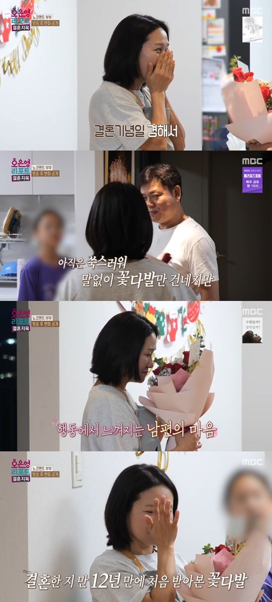 결혼 기념일을 맞아 남편이 아내에게 꽃다발과 손 편지를 선물했다. 아내는 "결혼 13년 만에 이제야 꽃을 선물했다. 세상에 너무 고맙다"라며 눈물을 보였다.
