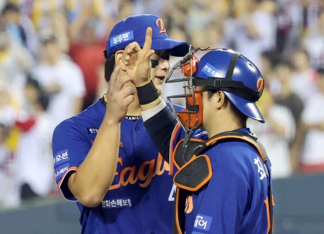 김경문 감독과 양상문 투수코치는 김서현이 위기를 딛고 이겨내길 바라고 있다. 그와 배터리를 이루는 최재훈은 그 마음이 더 간절하다.