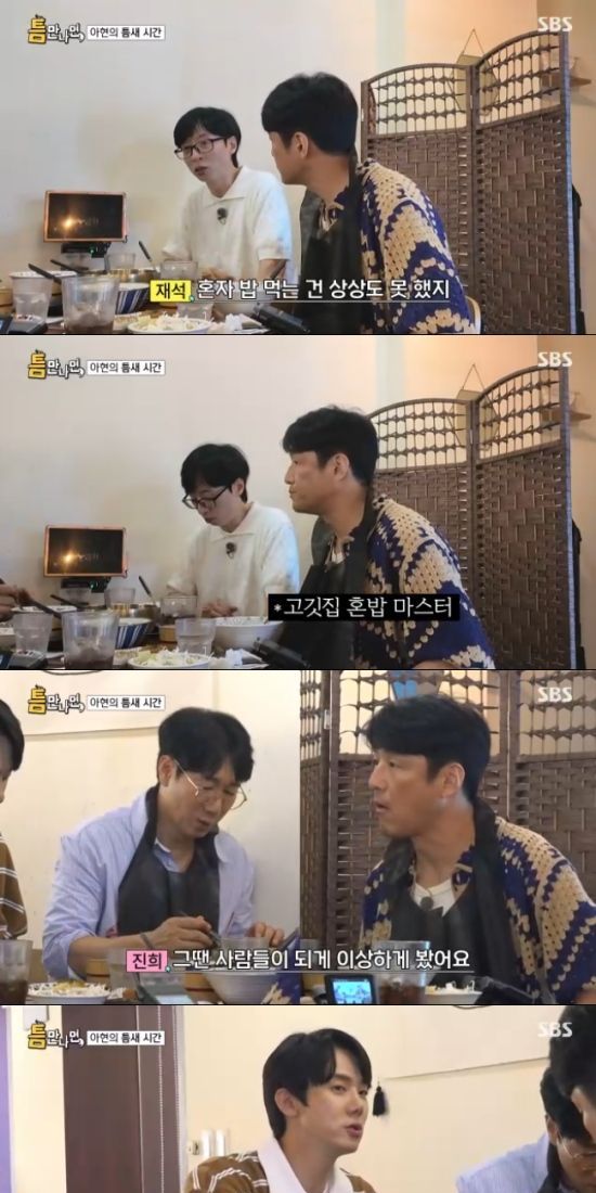 이후 이들은 '틈 주인'이 추천한 식당으로 점심을 해결하기 위해 이동했다. 그 가게는 혼밥족들을 위한 자리가 많이 마련되어 있었다. 이를 본 유재석은 "예전에는 혼자 밥을 먹는건 상상 못했다"고 했다.