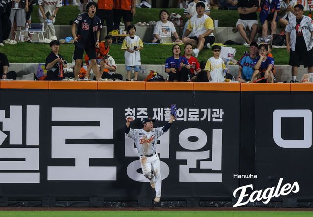 김서현은 이후 유강남과 손호영을 연속으로 땅볼 처리하며 리드를 지켜냈다. 지난주 등판한 4경기에서 모두 실점하며 올 시즌 첫 위기를 겪은 김서현이 실점 없이 임무를 완수했다. 선발 투수 폰세에게 승리 투수 요건을 안겨 개막 15연승을 지원한 문현빈이 김서현이 올 시즌 가장 의미 있는 세이브를 올리는 데 크게 기여했다.한화가 단일시즌 최다 매진 경기(47) 타이기록까지 세운 12일 롯데전. 문현빈은 빼놓을 수 없는 수훈 선수였다.