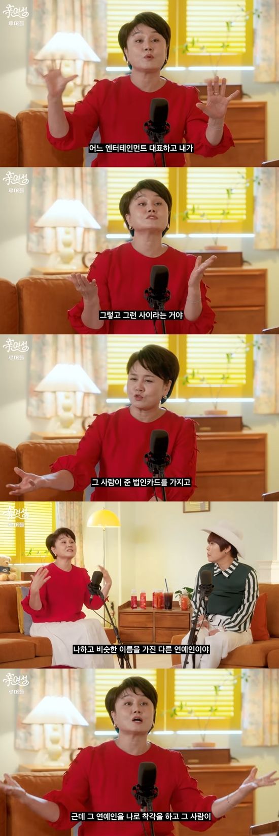 이경실은 "그 사람이 준 법인카드를 가지고 내가 맨날 갤러리아 가서 명품을 사고 (했다더라). 너무 구체적이다"라고 덧붙였다.