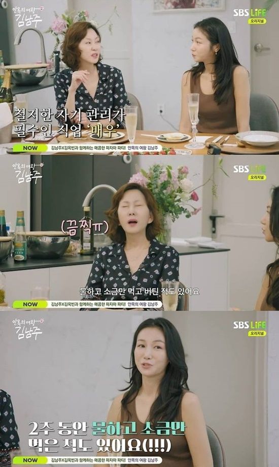 이날 김남주는 "우리도 일 없으면 많이 먹는다. 일이 있으면 참는 것이다"라고 솔직하게 말했다.
