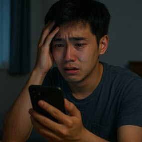 후회스러웠다. 그러고 보니 화면 속 여성의 모습은 자연스럽지 않고 AI로 만든 듯한 부자연스러움이 있었는데, 그걸 무시한 자신이 원망스러웠다.
