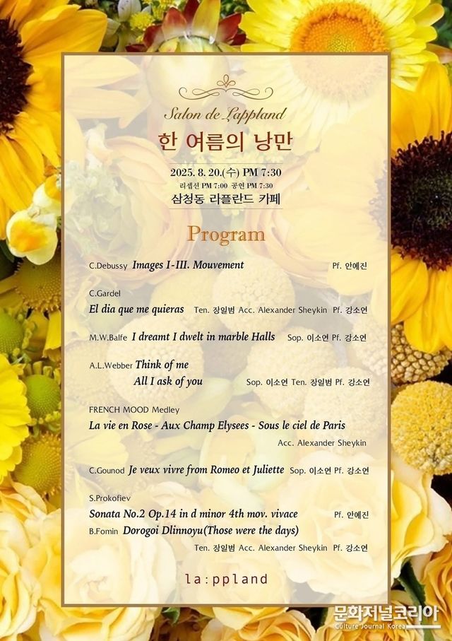 한편 이번 ‘한 여름의 낭만’ 콘서트는 무더운 여름의 끝자락, 음악이 주는 설렘과 따뜻한 정서를 한자리에서 느낄 수 있는 특별한 시간이다. 삼청동의 고즈넉한 풍경과 어우러져, 관객들에게 오래도록 기억에 남을 여름밤의 추억을 선사할 것으로 기대된다.
