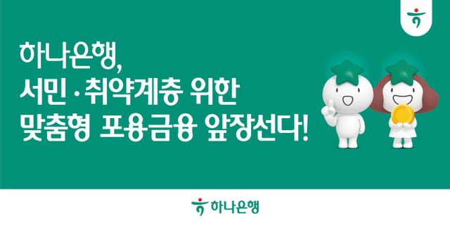 하나은행 관계자는 “고물가와 불확실한 경제 상황 속에서 어려움을 겪고 있는 서민과 청년 등 금융취약계층을 위한 실질적인 금융혜택을 제공해 드리기 위해 폭 넓은 맞춤형 금융지원을 시행해 오고 있다”며 “앞으로도 하나은행은 사회 전반에 걸쳐 지속 가능한 성장을 이어갈 수 있는 실질적 포용금융을 실천해 나가겠다”고 말했다.