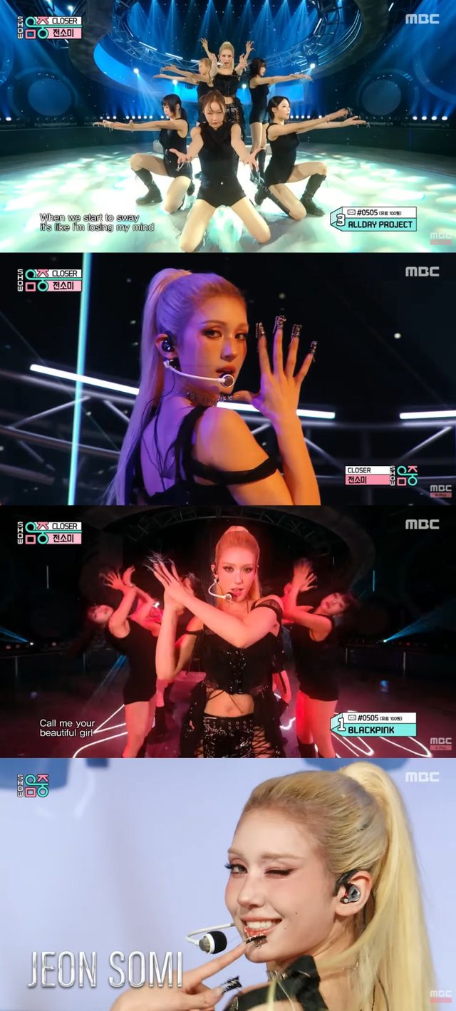 시원한 포니테일 헤어로 완벽한 비주얼을 완성한 전소미는 강렬한 퍼포먼스와 능숙한 무대 매너를 빛냈다. 화려한 군무와 중독성 강한 포인트 안무, 무대에 푹 빠져들게 하는 전소미의 표정 연기까지 어우러져 완벽한 3분을 선사했다.