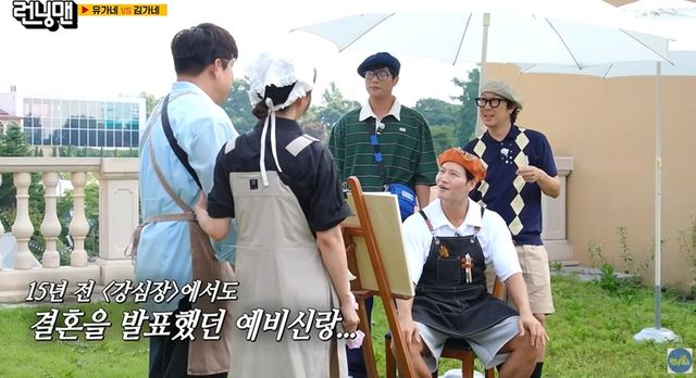이날 신동은 송지효와 팔짱을 끼고 등장해 “지효 남자친구 신동이라고 한다”고 상황극에 돌입했다. 이에 송지효는 “이제 신랑이라고 해야한다. 예랑아”라고 너스레를 떨어 웃음을 자아냈다.